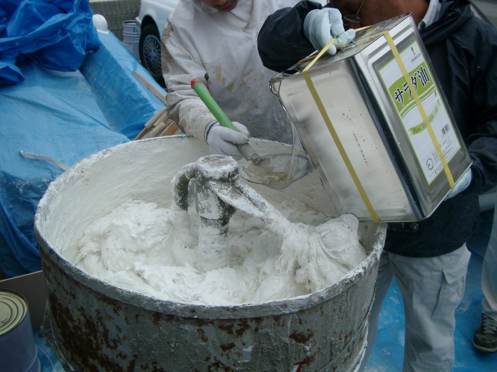 で、練り込んでいる様子です。外壁にはサラダ油を混ぜます。