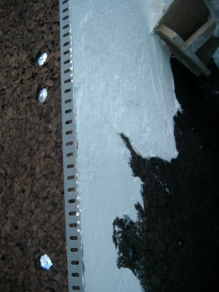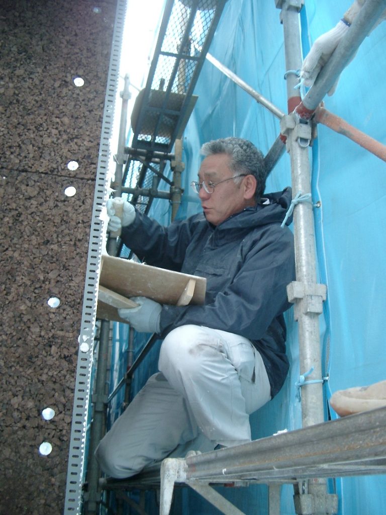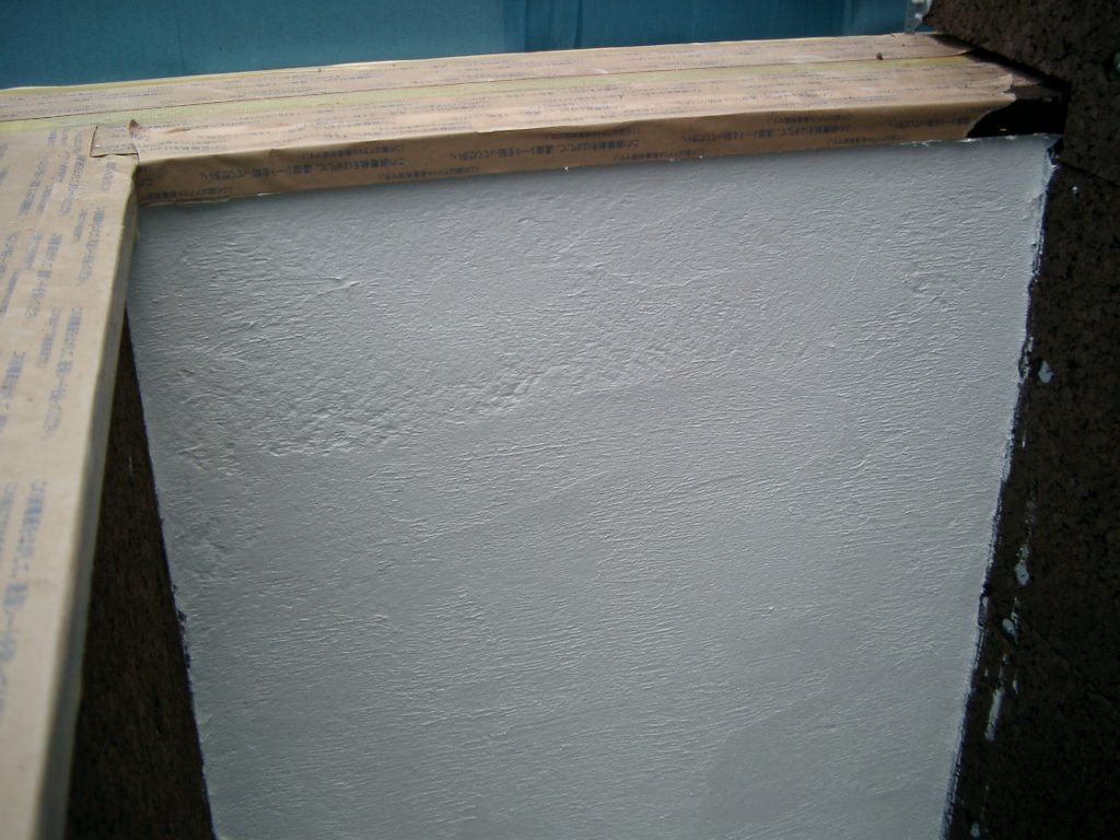 通常は1週間程度の養生期間が必要なモルタルを漆喰に練り込んだモルタル漆喰を下地にするのですが、コストは倍以上掛かるのですが養生期間を短縮するため漆喰を下地としていきなり塗ります。