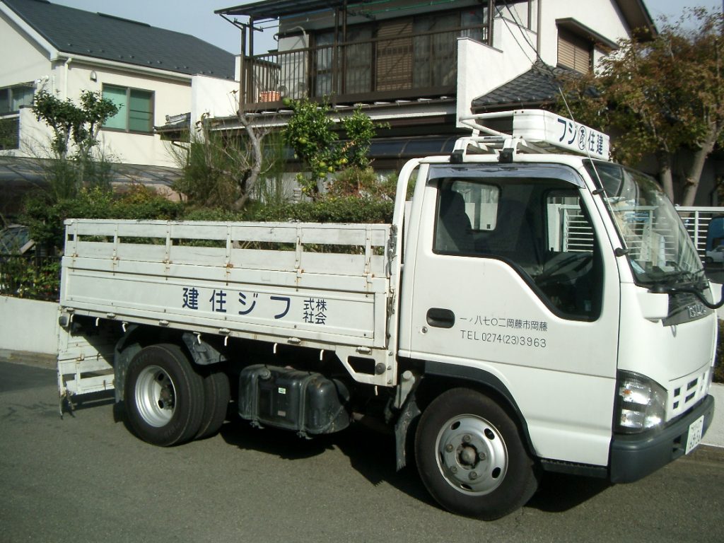ちなみに下の写真は親戚の瓦屋のトラックですが厚木営業所があるので厚木から職人が来ると思っていたら初日には藤岡から来てくれました。遠くからありがとうございました。