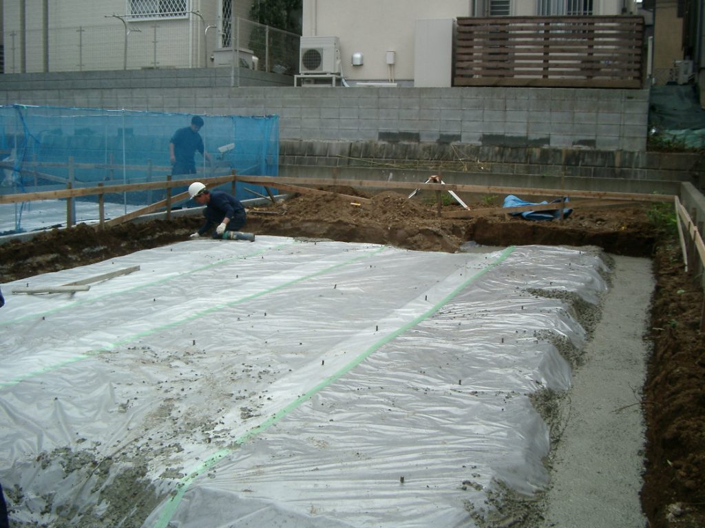 横浜市青葉区 注文住宅 漆喰と無垢材を使った自然素材の家 - 基礎工事、進んでいます