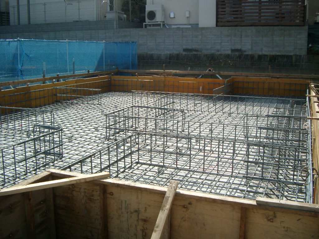 捨てコンクリートの打設も終り、基礎の配筋も進んできました。