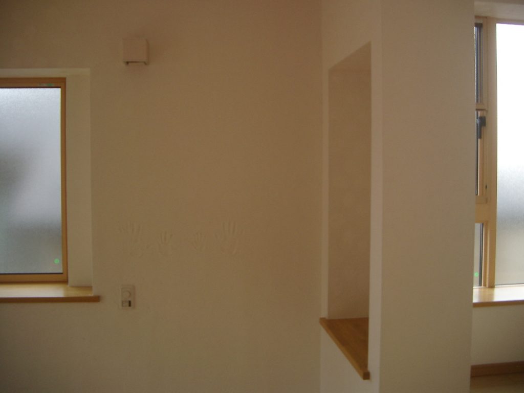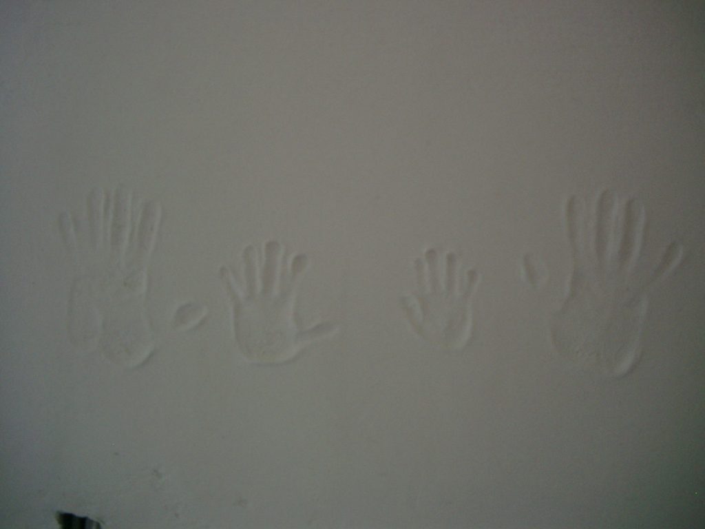 漆喰を素手で触ると手が荒れるのでラップを当てて手形を押した方が良いのですが、ラップを当てるとどうしてものっぺりとした手形になってしまうので、 このような機会はめったにないので素手で押してもらいました。