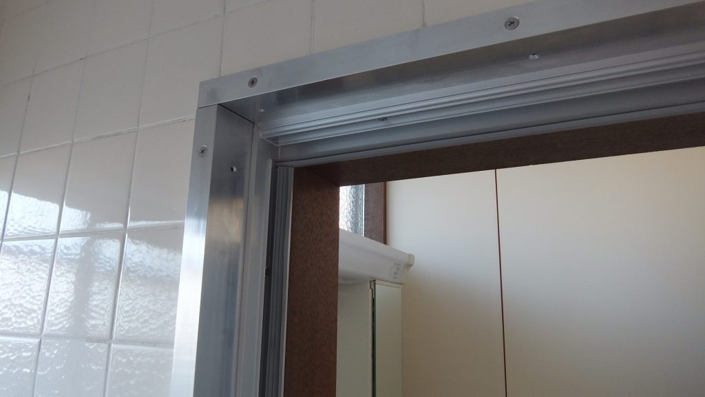 ドアの外枠はなんと木製だったのでアルミで特注で作製しました。
