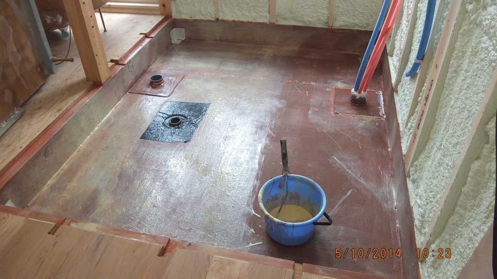 今回の建物では、3階にハーフユニットの浴槽を設置する関係で入念に防水処理を行います。