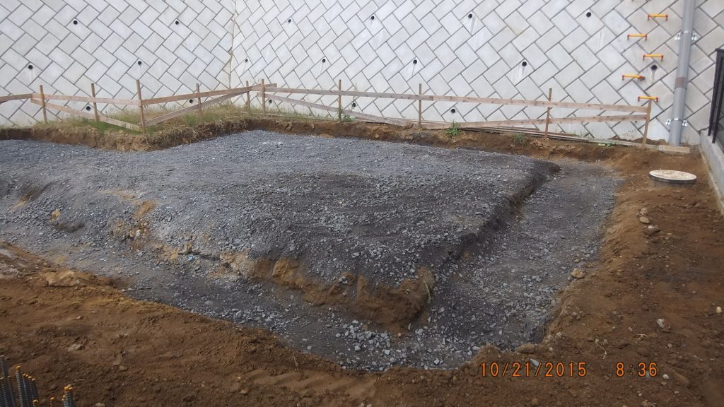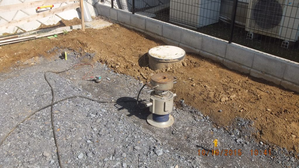 予期せぬ浸透枡の出現によって基礎工事が中断しました。
