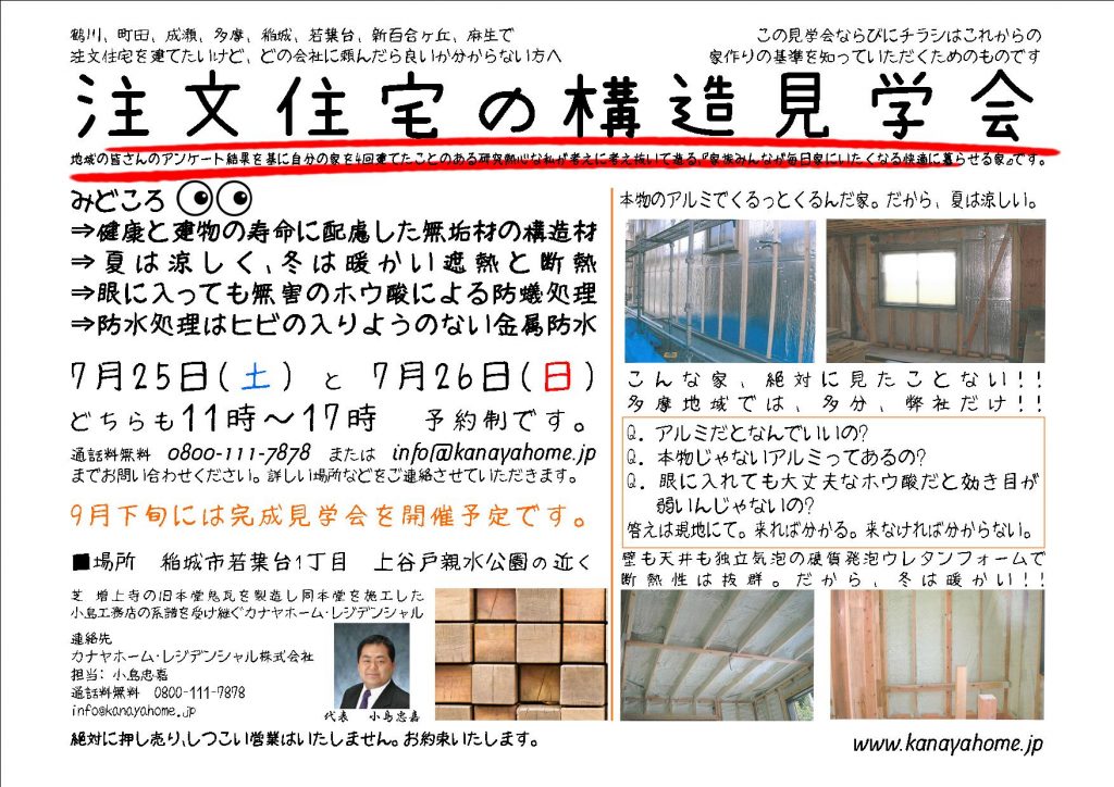 の構造見学会を7月25日(土)と26日(日)に開催する予定です。
