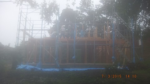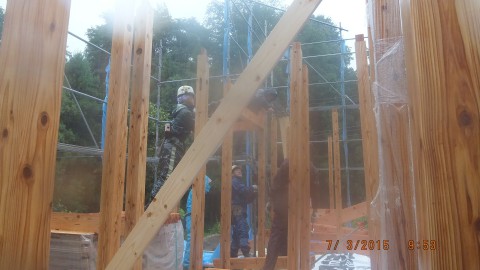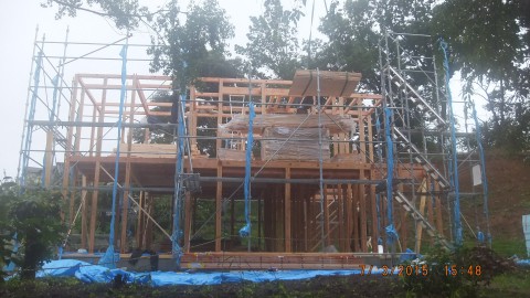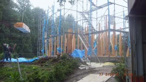 そして、小雨になったころなんとか2階の梁まで作業を終えました。