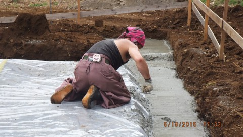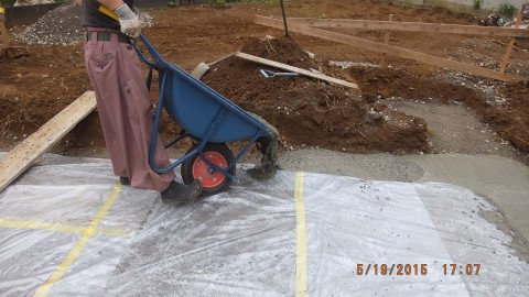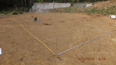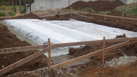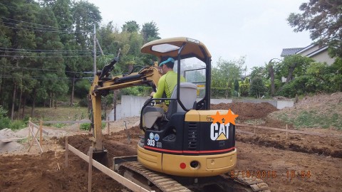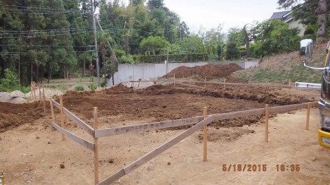 丁張りから始まり、掘削、転圧、防湿シート貼り、そして捨てコン打設まで昨日と今日の2日間で基礎屋の伊藤さんが一人で行ってくれました。