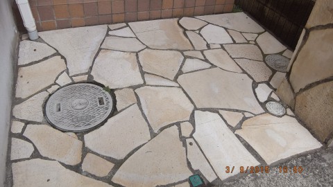 先づは3月28日に汚れ落としのケレン作業と石材の斫り(剥がし)作業を行いました。