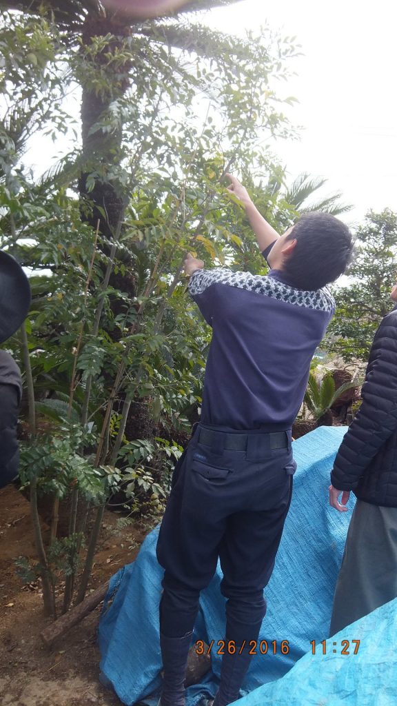 こちらの写真は造園屋の畑で植木を選んでいる様子です。
