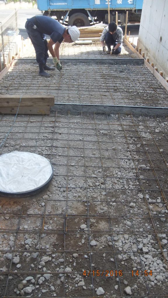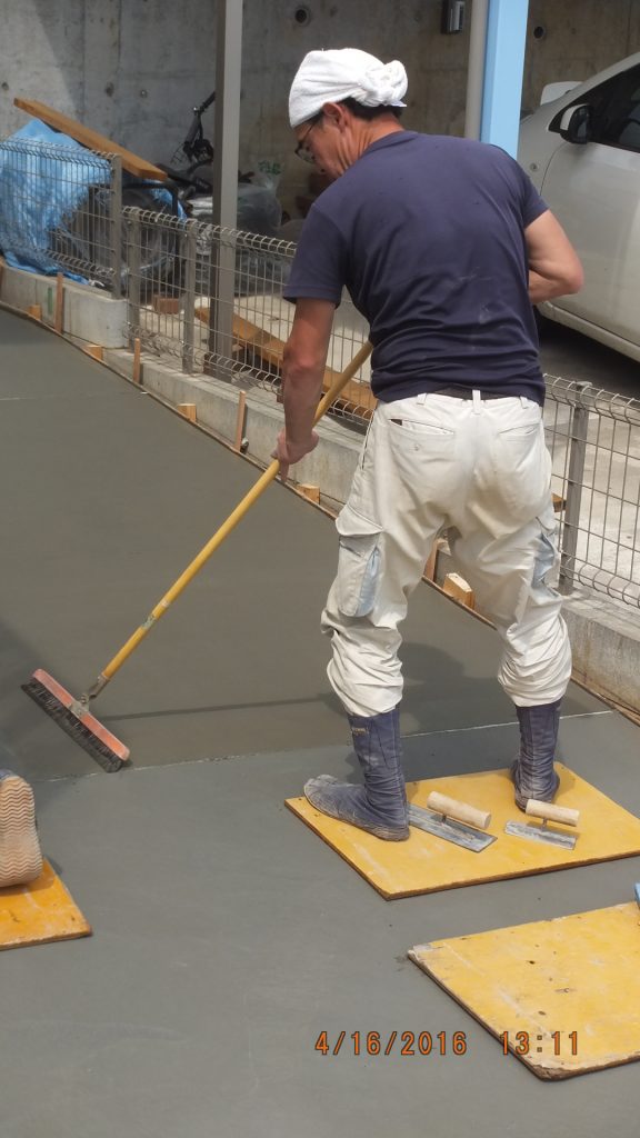 そして、一番最後に駐車場のコンクリート土間の製作の様子です。
