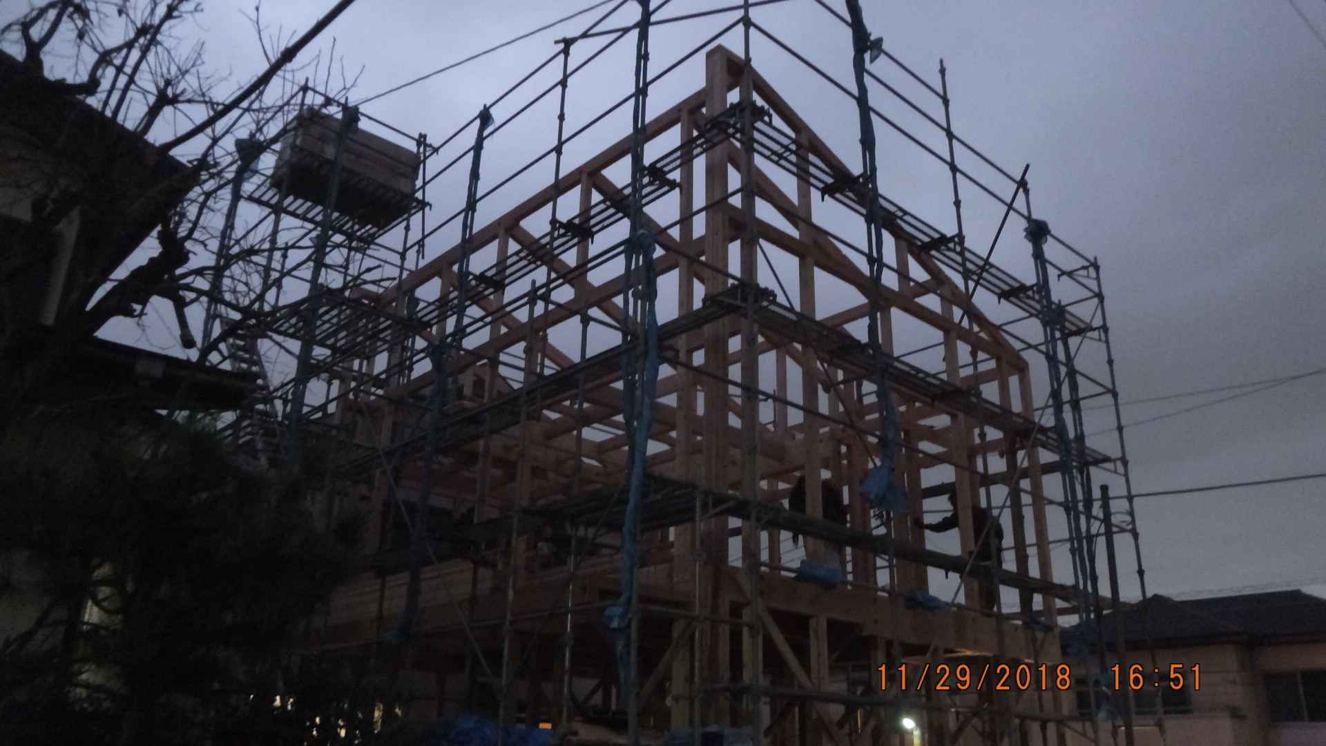 多摩市諏訪 注文住宅 自然素材や無垢フローリングにこだわった片流れ屋根の家 ー 上棟しました