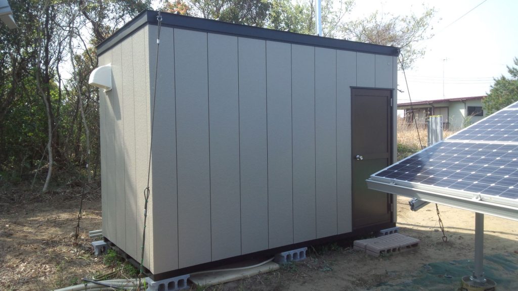 産業用、野立ての太陽光発電システム施設の一部としてユニットハウスを使用していただきました。
