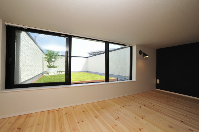 屋上に出る塔屋にはパインの無垢材フローリングを採用し、優しい印象を醸し出しています。