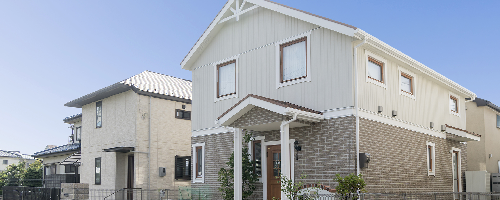 外観 外壁に2色のフランス漆喰、屋根材にはアスファルトシングル材を使用した地中海をイメージした外観です。 外壁、屋根ともに30年間メンテナンスを必要としない「メンテナンス・フリー」を目指した部材選定をしています。 外壁は […]