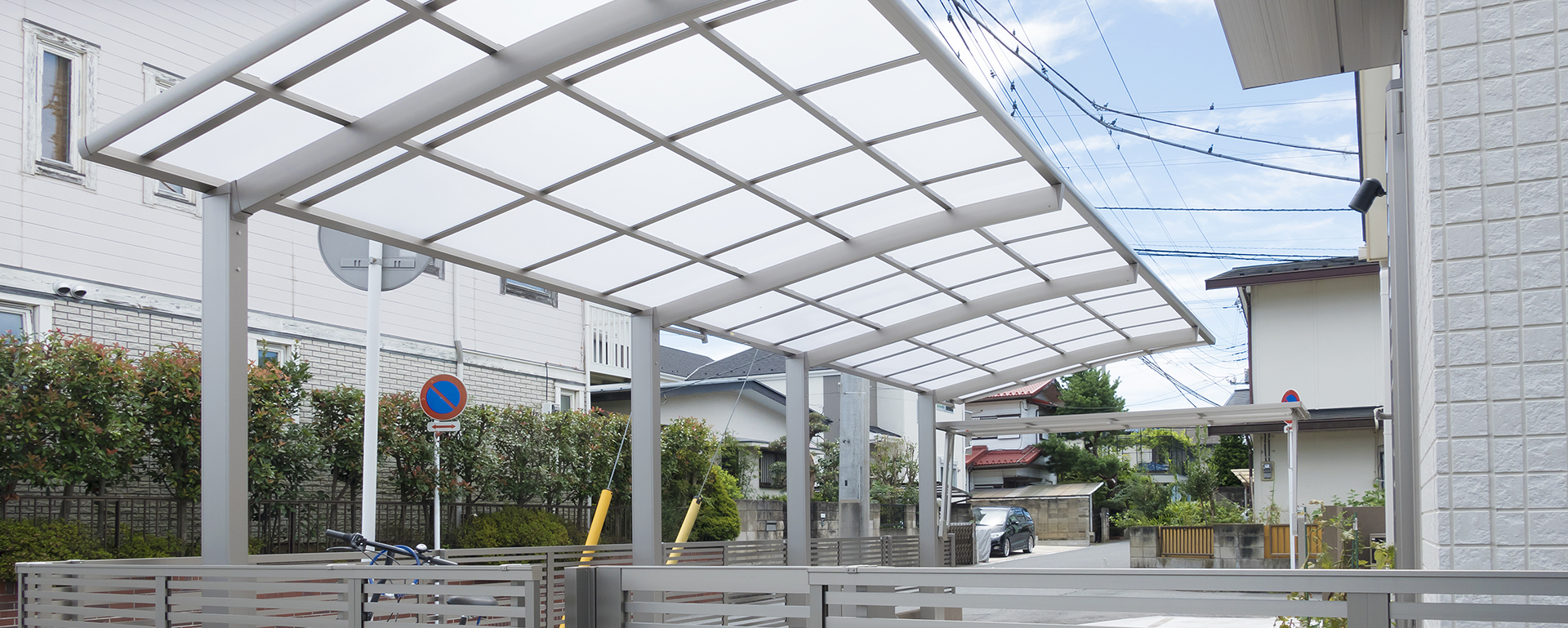 外構工事の主なものとして、フェンスの設置、カーポートの設置、サンルームの施工、ウッドデッキの製作などを手掛けます。